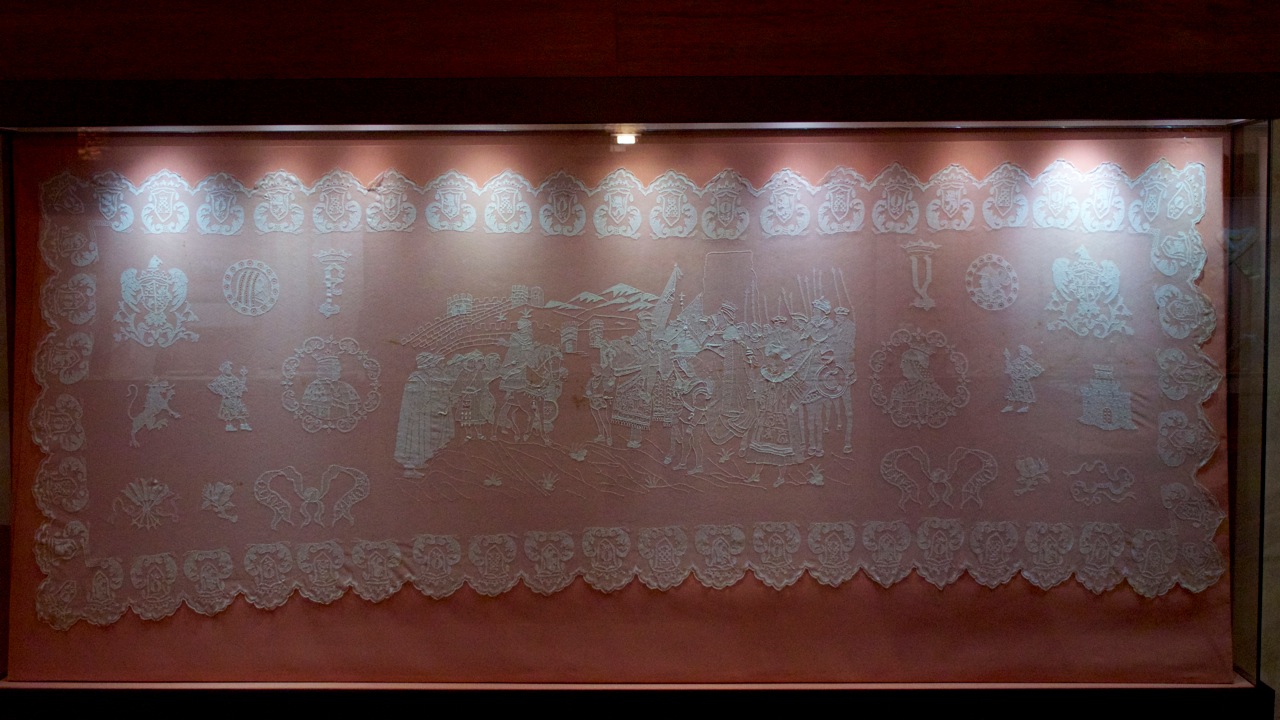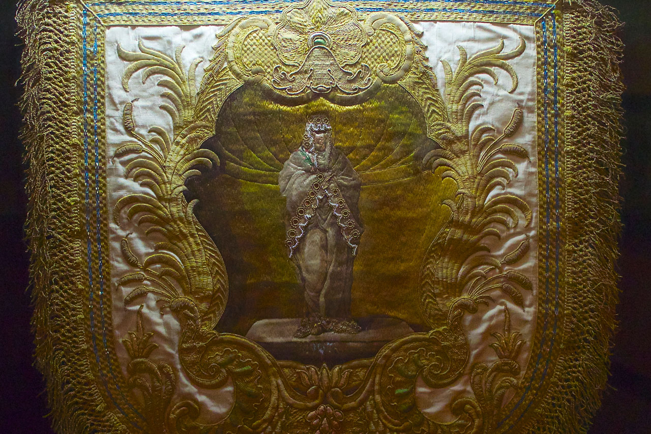 Para finalizar, la cuarta sala se ocupa del llamado textil erudito; es decir, de las prendas de hilo fino, damasco, brocado, raso de seda, terciopelo, encajes de otro y plata... todos ellos creados para uso eclesiástico y cortesano.